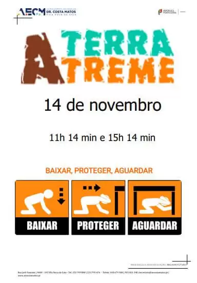Nas salas de aula, os docentes orientaram os seus alunos para que realizassem os exercícios, BAIXAR, PROTEGER, AGUARDAR. Esta iniciativa, que é organizada anualmente pela Autoridade Nacional de Emergência e Proteção Civil, permitiu que os nossos alunos refletissem sobre os procedimentos a adotar em caso de sismo, e interiorizassem essas ações.