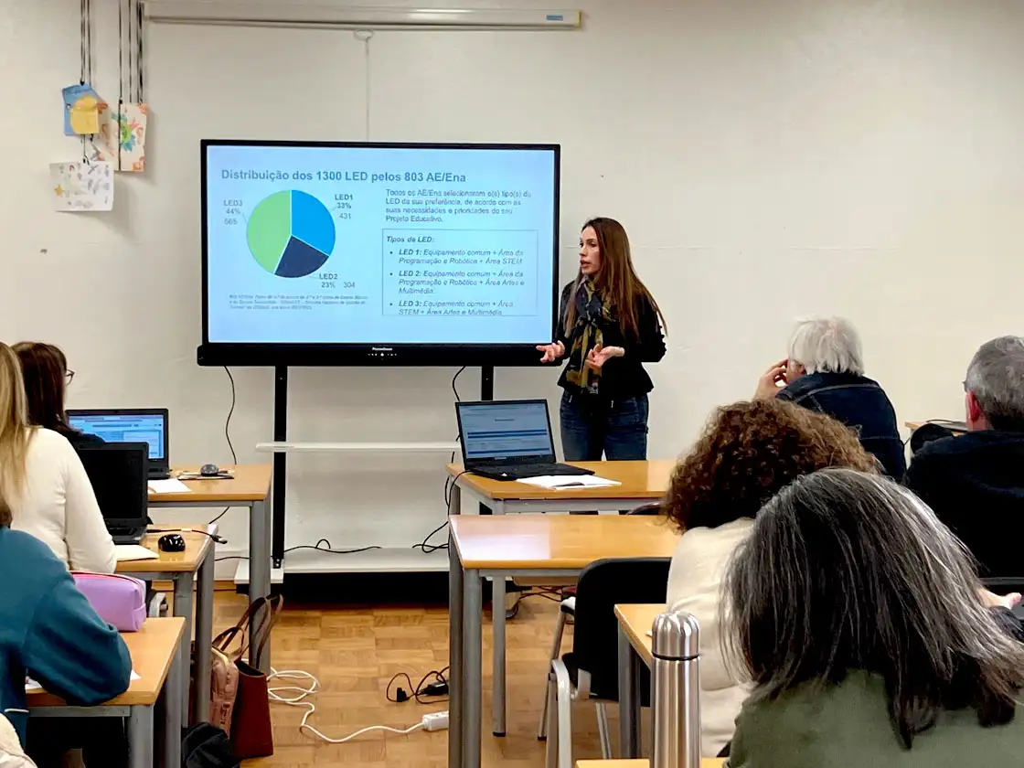 Ao longo das sessões, os professores têm oportunidade de conhecer diferentes equipamentos e aplicações, experimentar estratégias didáticas e partilhar experiências entre pares, criando um espaço de colaboração e reflexão sobre as práticas educativas. Esta abordagem contribui para que os Laboratórios de Educação Digital se afirmem como ambientes de aprendizagem dinâmicos, capazes de apoiar diferentes áreas curriculares e de responder aos desafios da escola atual.